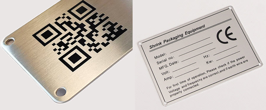 ✅ Textual information: Brand name, model, specifications, production date, expiration date, serial number, batch number, manufacturing location, technical specifications, safety warnings, certification marks, and personalized text. Examples include engraving a user's name on an aluminum phone case and adding technical specifications and serial numbers to nameplates on industrial equipment.